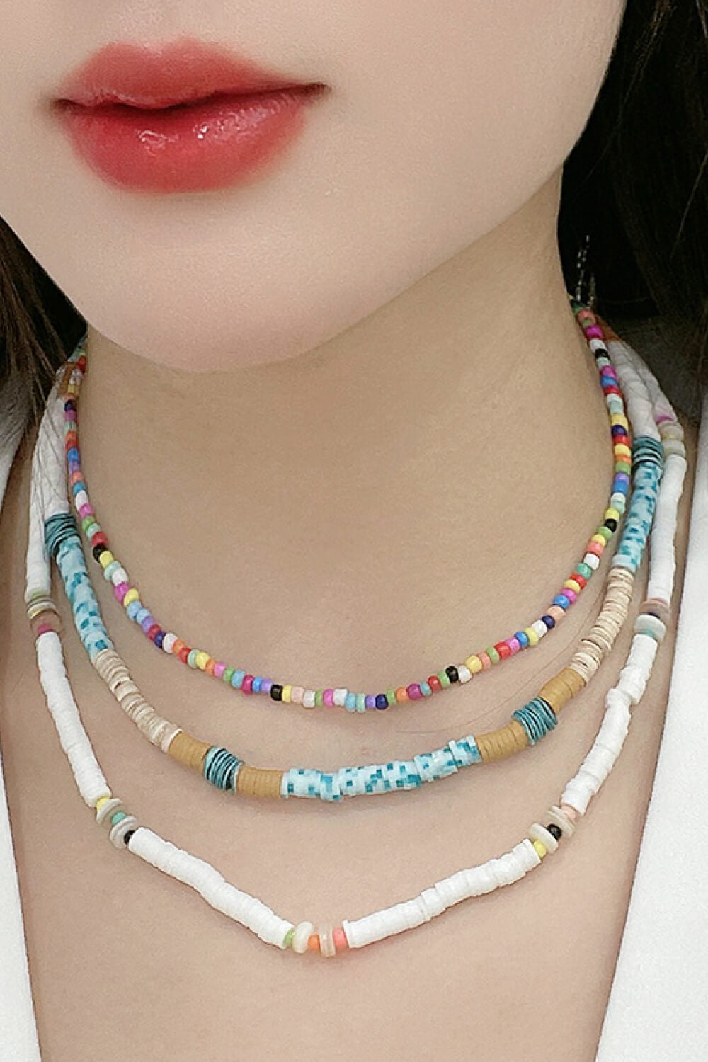 Multicolored Bead Necklace Three-Piece Set
