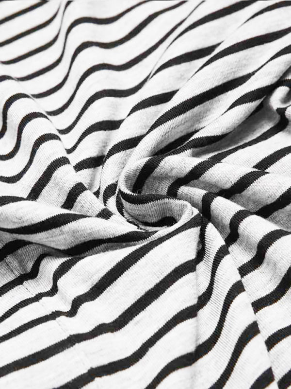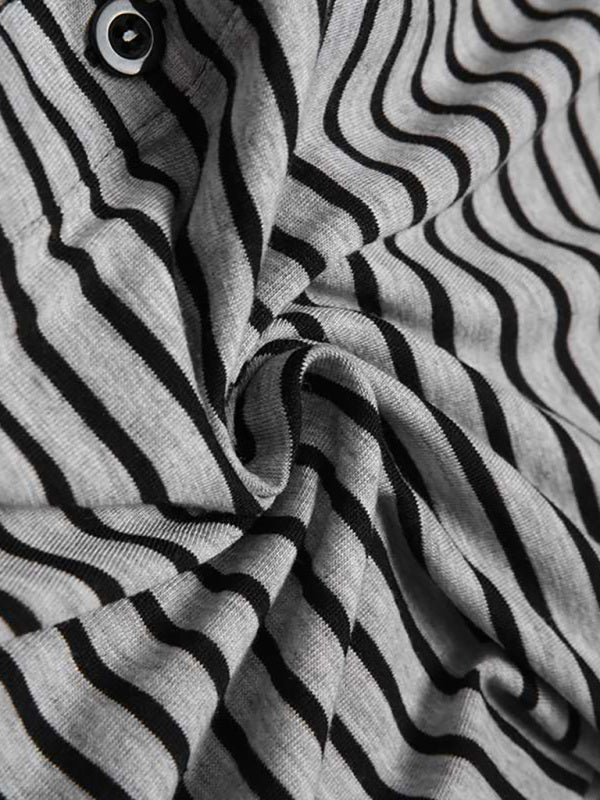 Men's Slim Striped Print Crew Neck Button Long Sleeve Trousers One Piece Pajama