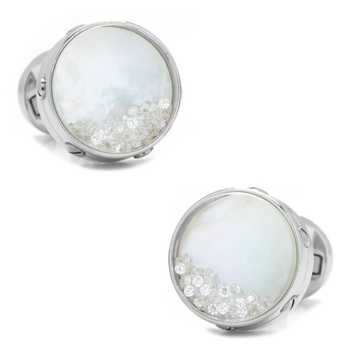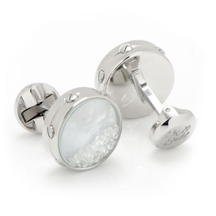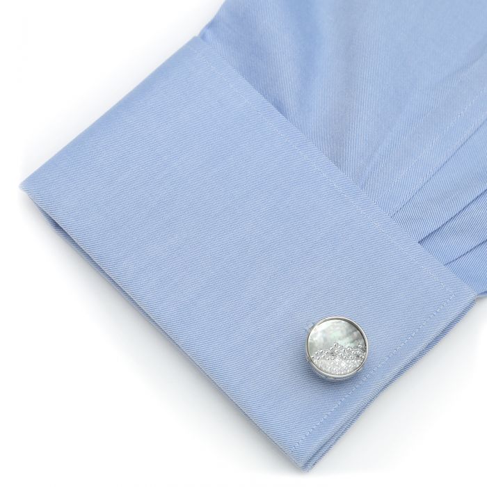 Wear the conversation starter. These beautiful iridescent cufflinks are sure to catch attention. The mother of pearl face shines through the light-capturing, floating crystals. You will leave a lasting impression on all of those around you.
