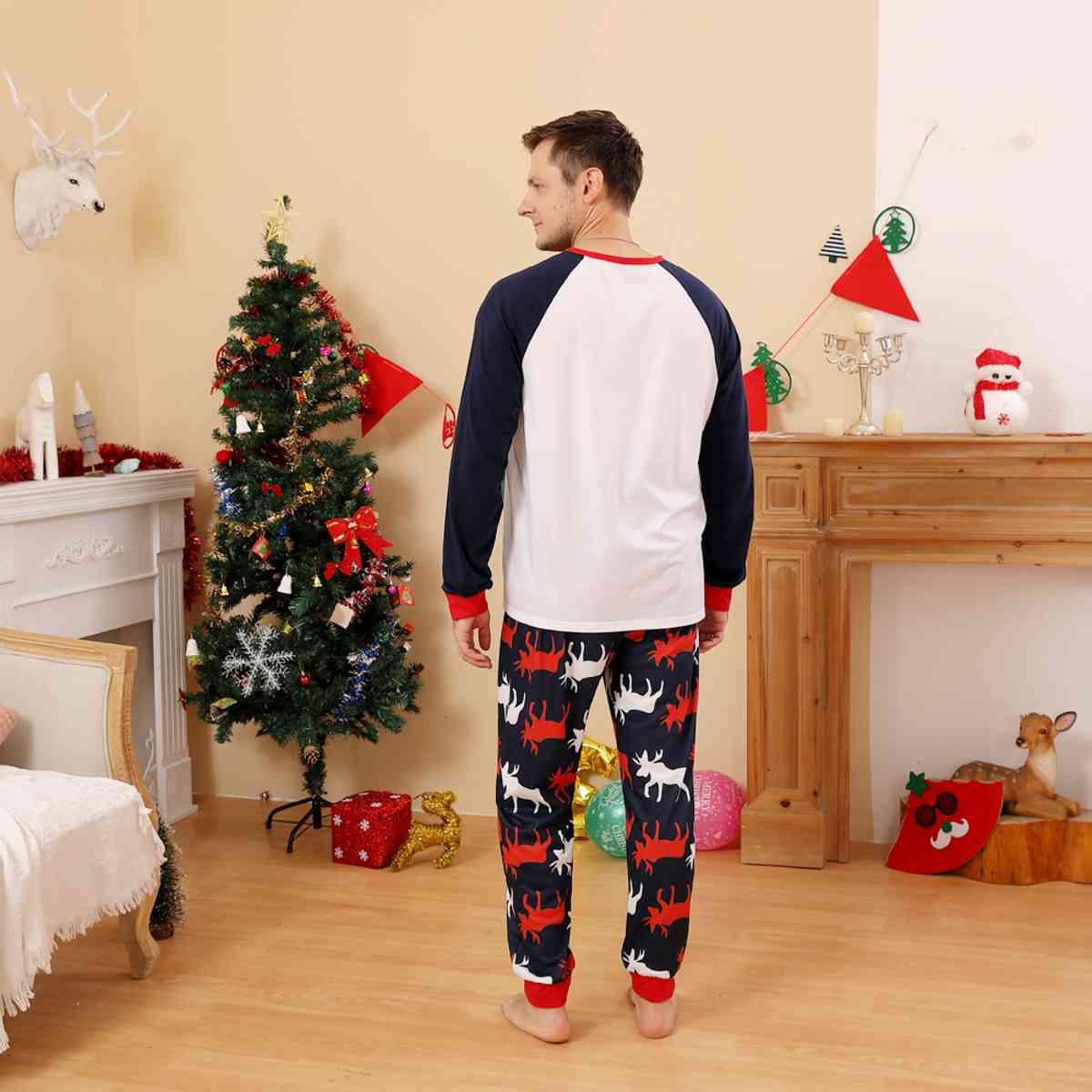 Men MERRY CHRISTMAS Graphic Top and Reindeer Pants Set
