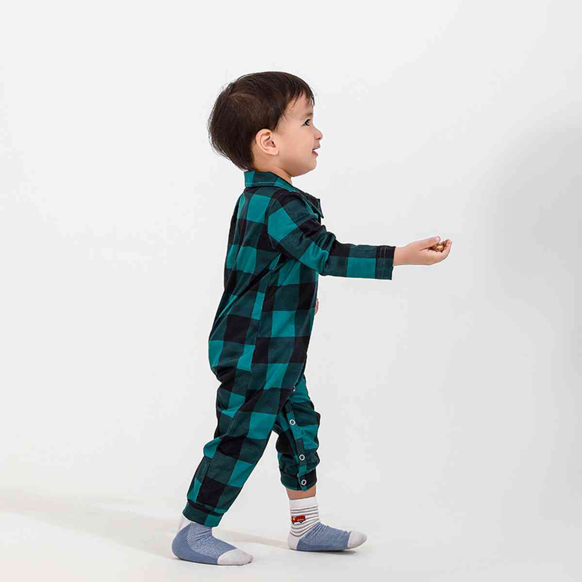 Baby Plaid Collared Neck Jumpsuit