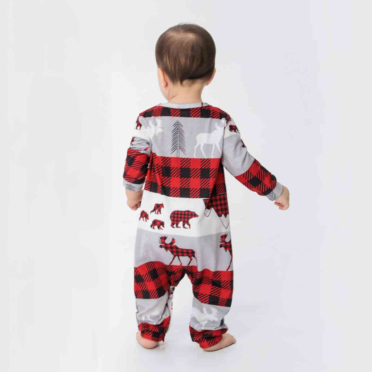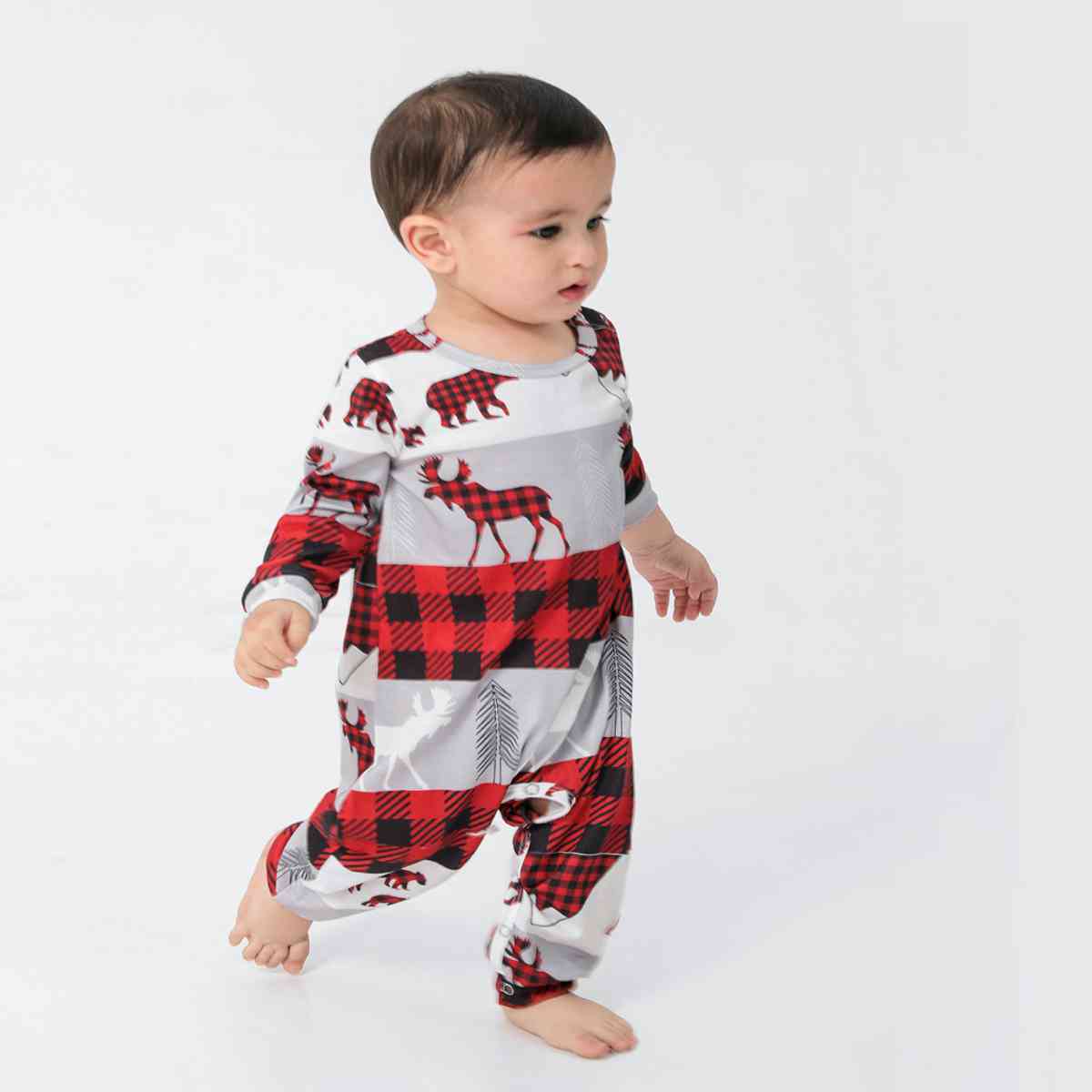 Baby Reindeer & Plaid Round Neck Jumpsuit