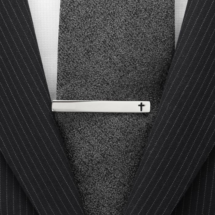 Make a simple statement of faith with this elegant polished stainless steel tie clip, featuring a discrete cross cutout and hinged backing for ease of dressing. It's the perfect addition to your formal wardrobe. Includes branded gift box.