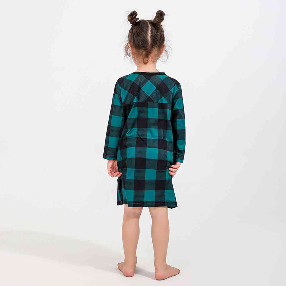 Girl Plaid Round Neck Long Sleeve Dress
