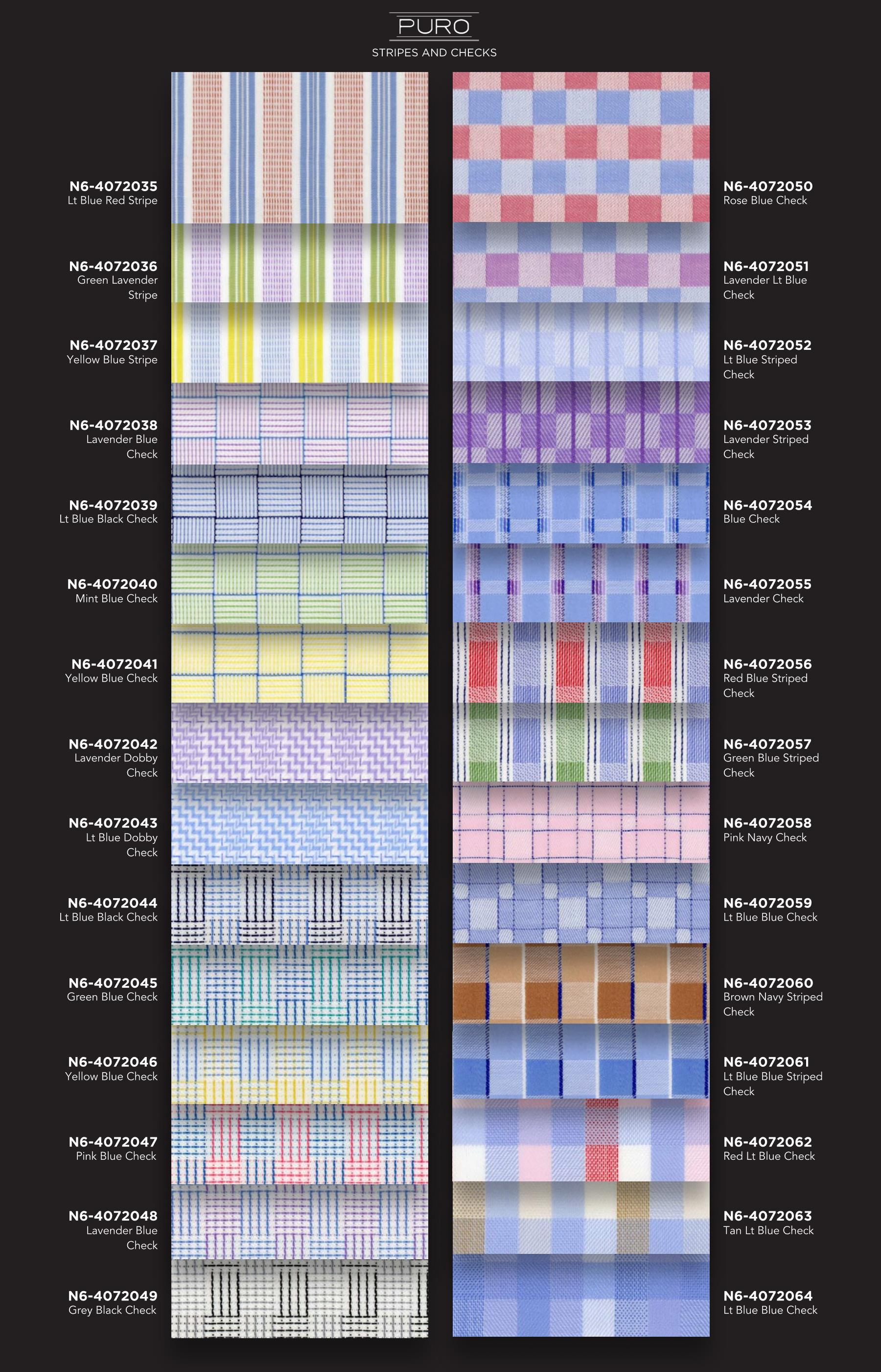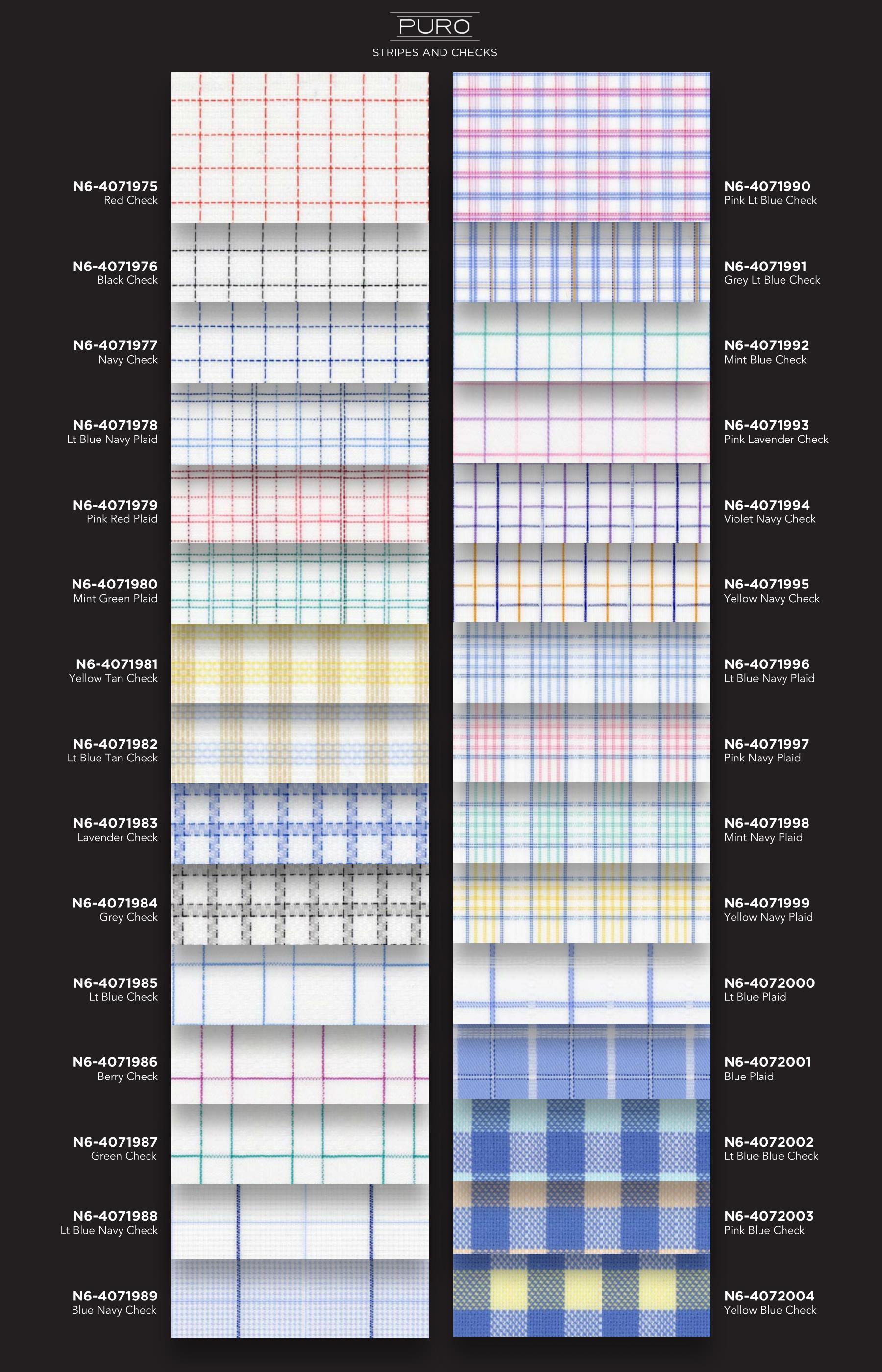 Classic and stylish is what comes to mind when you look through the Puro Stripes & Checks collection of shirting fabrics. This series is perfect for professional looks or casual looks in fine 100% cotton. This collection never disappoints!