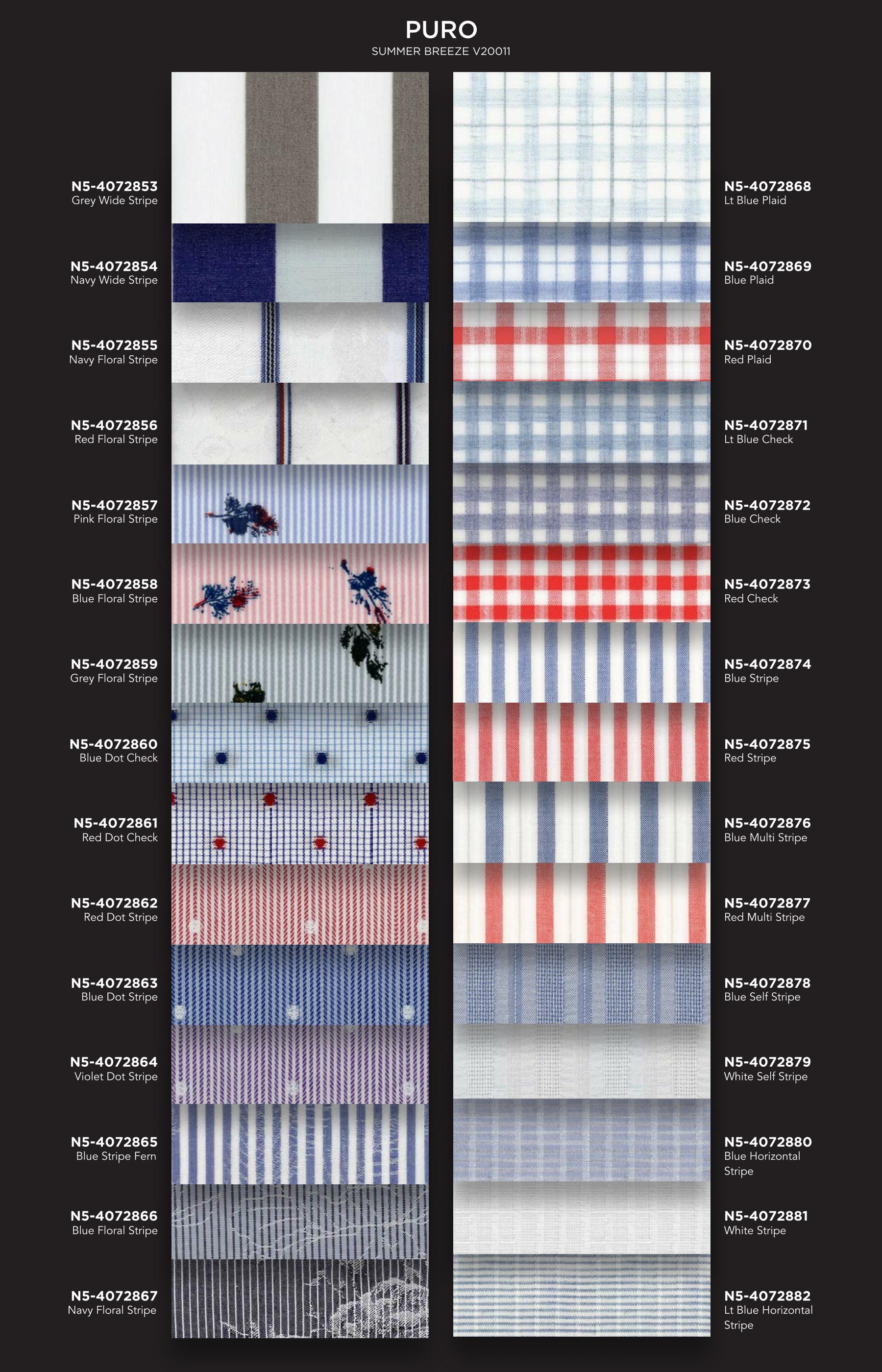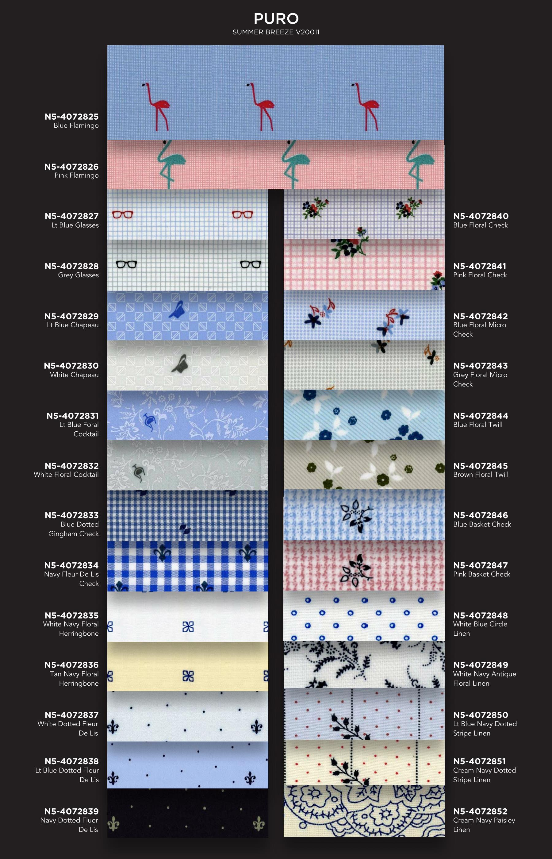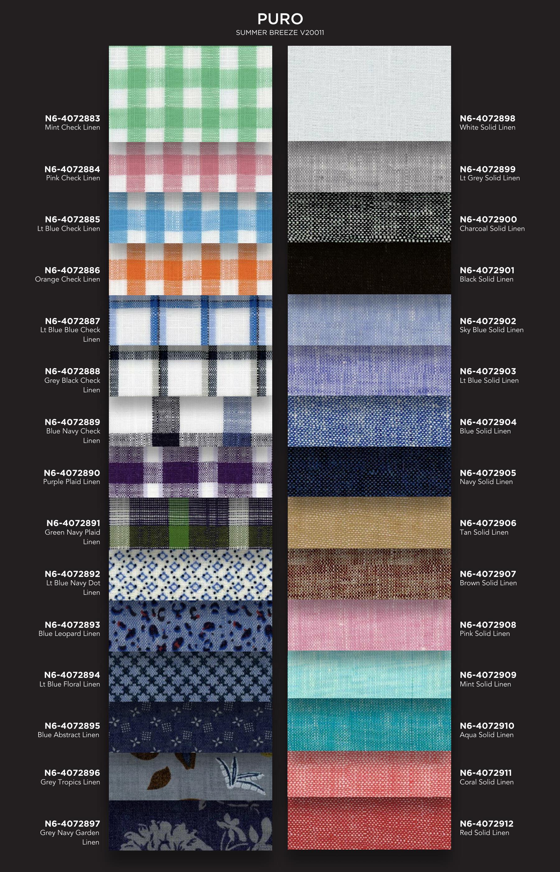 Get your linen on! Cool and crisp for the warm months, the Puro Summer Breeze line-up is your best bet for a luxurious summer look. Traditional patterns along with whimsical and bold looks in luxurious linen are featured here for your shirting pleasure!
