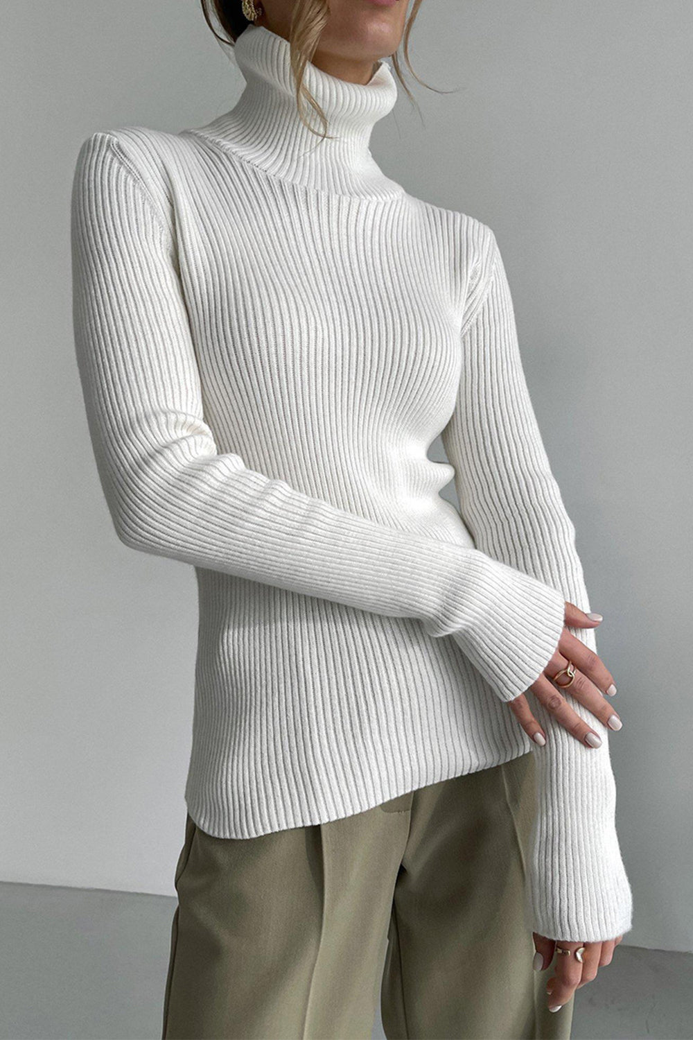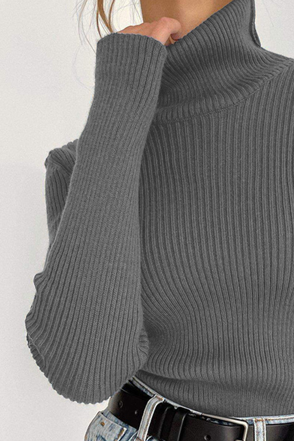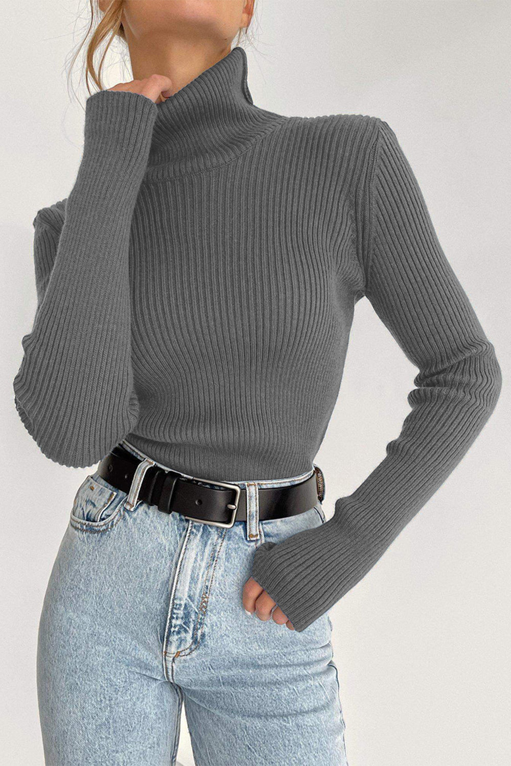 Ribbed Turtle Neck Long Sleeve Sweater