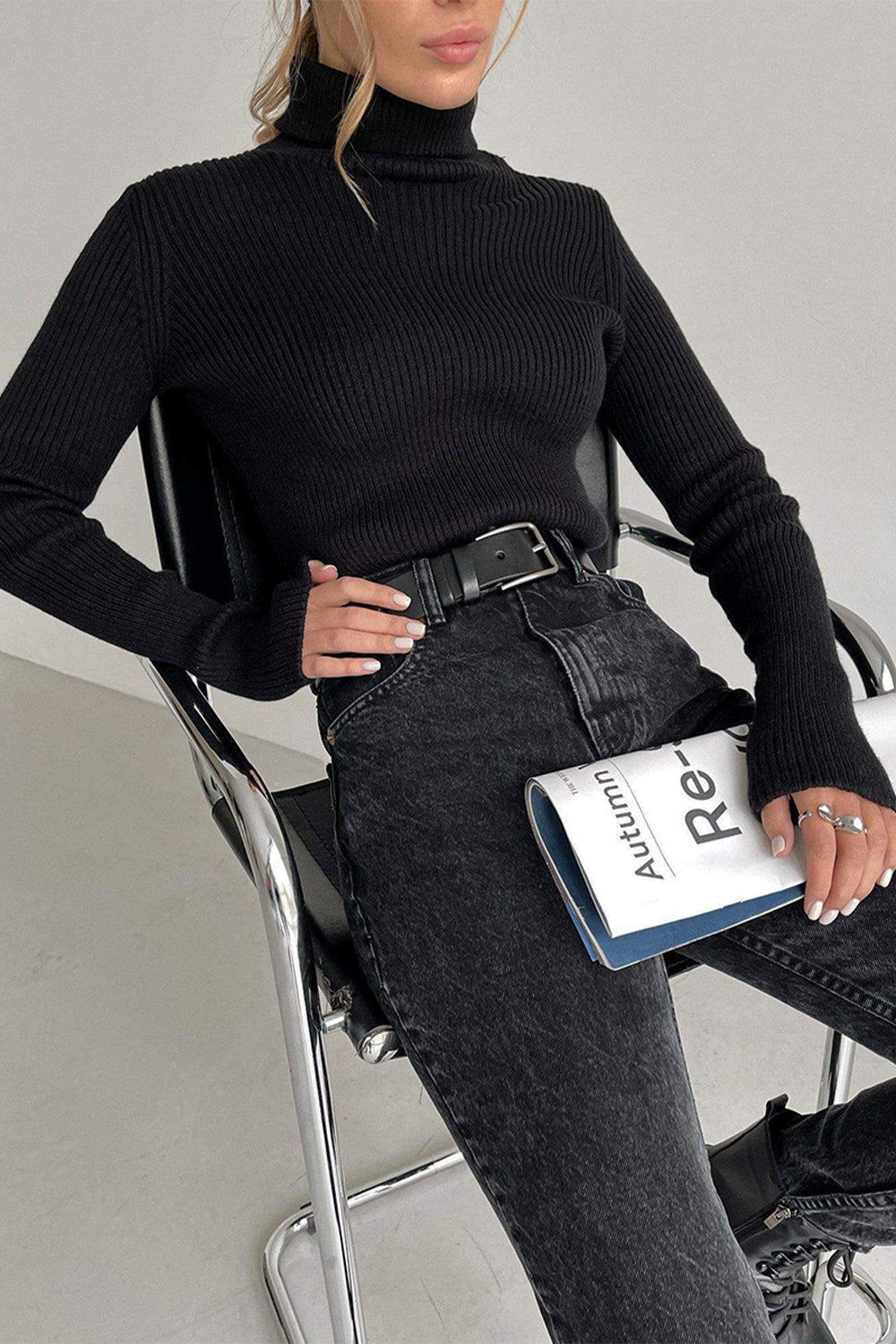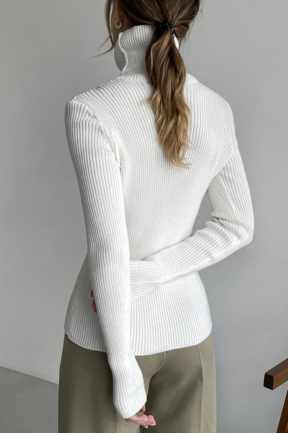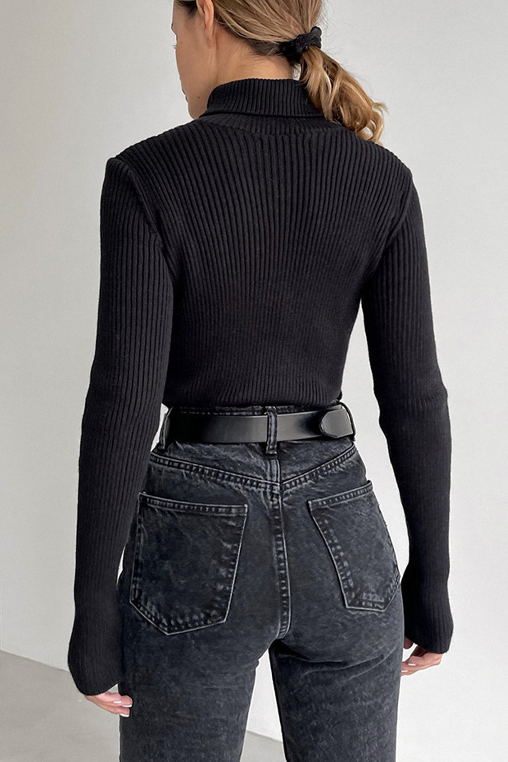 Ribbed Turtle Neck Long Sleeve Sweater