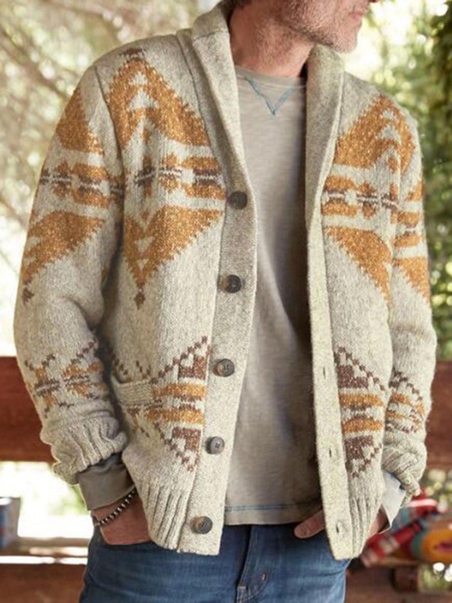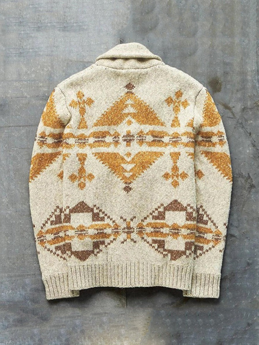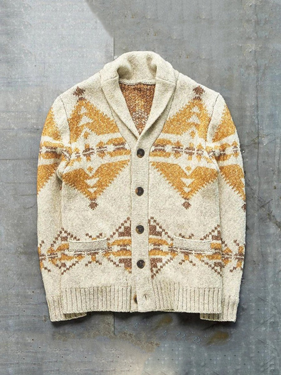 Southwest Shawl Collar Button Knitted Cardigan