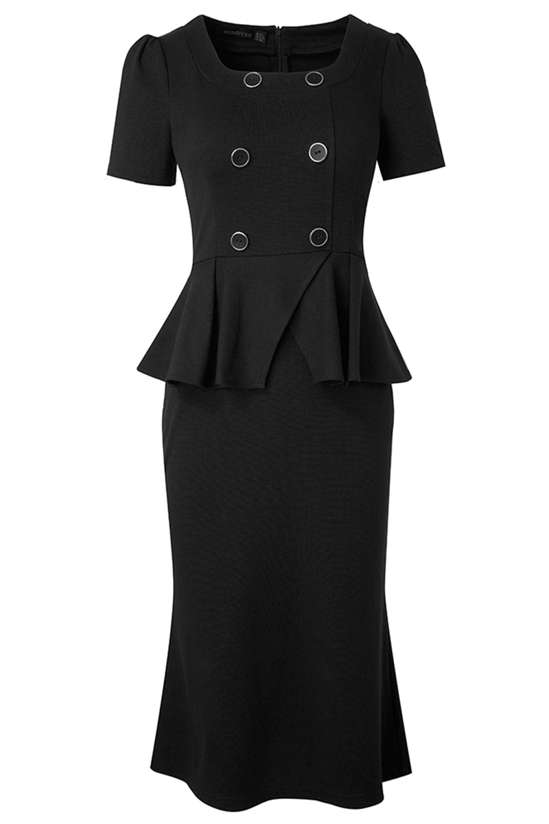 Square Neck Short Sleeve Pencil Dress