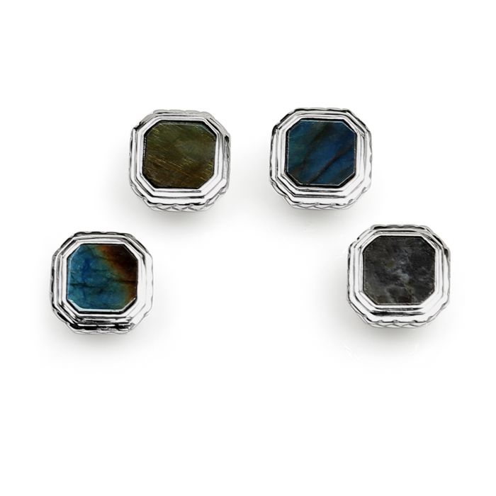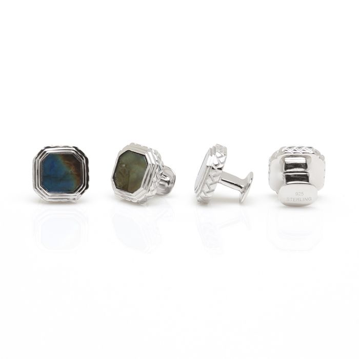 These labradorite and sterling silver studs are each unique because they all have different shades. Each set is beautiful in its own unique way, ensuring no two sets will be alike, and the labradorite gives them a natural stone finish.