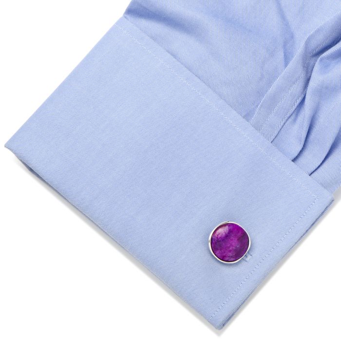 Sterling Silver Classic Round Sugilite Nebula Cufflinks