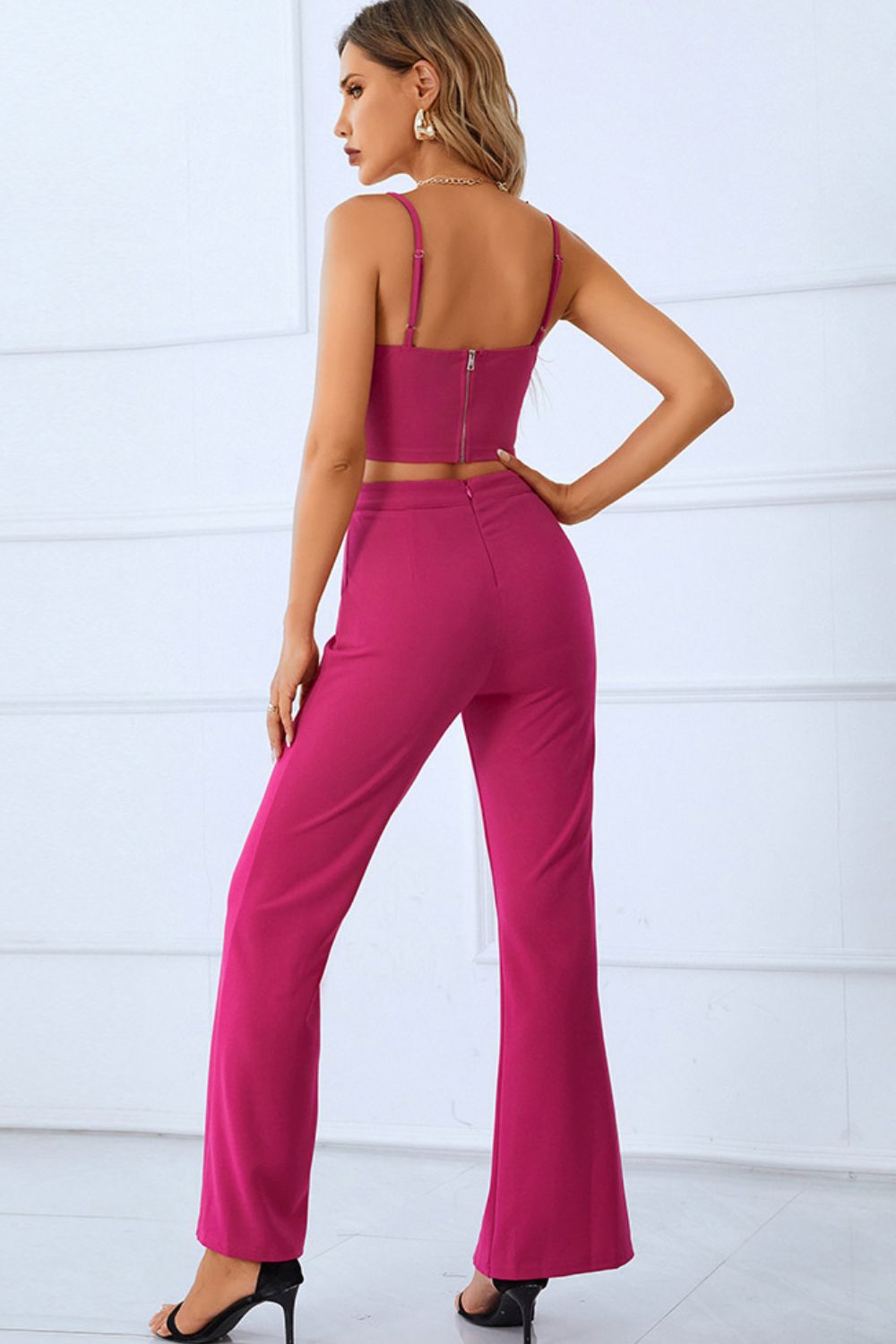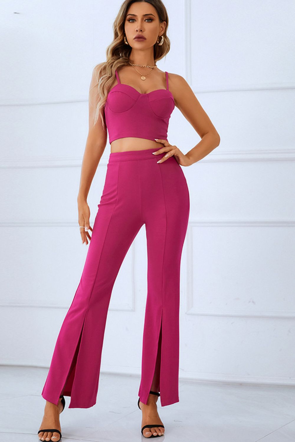 Sweetheart Neck Sports Cami and Slit Ankle Flare Pants Set