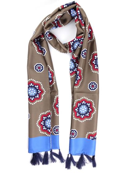 Pure Italian silk scarf. Printed with natural-based inks and with an excellent back pass. Embellished with handmade silk tassels. Dimensions: 45x180 cm (without the tassels) - 45x190 cm (with the tassels). Luxury product.