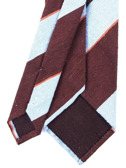 The 3-fold tie is the most common. What makes it unique is its construction. Unlined and finished with a hand hem (the same as pocket handkerchiefs), to obtain a tie similar to a foulard. Light, not very thick, almost unstructured. The feeling you get when wearing it is that you don't have any tie around your neck, given its low weight. Nonetheless, the knot is perfect and has the right consistency. A great protagonist of modern times, in which comfort is often favored. Definitely recommended in the warm season or when using heavier winter fabrics, which otherwise would give life to a tie that is too thick.