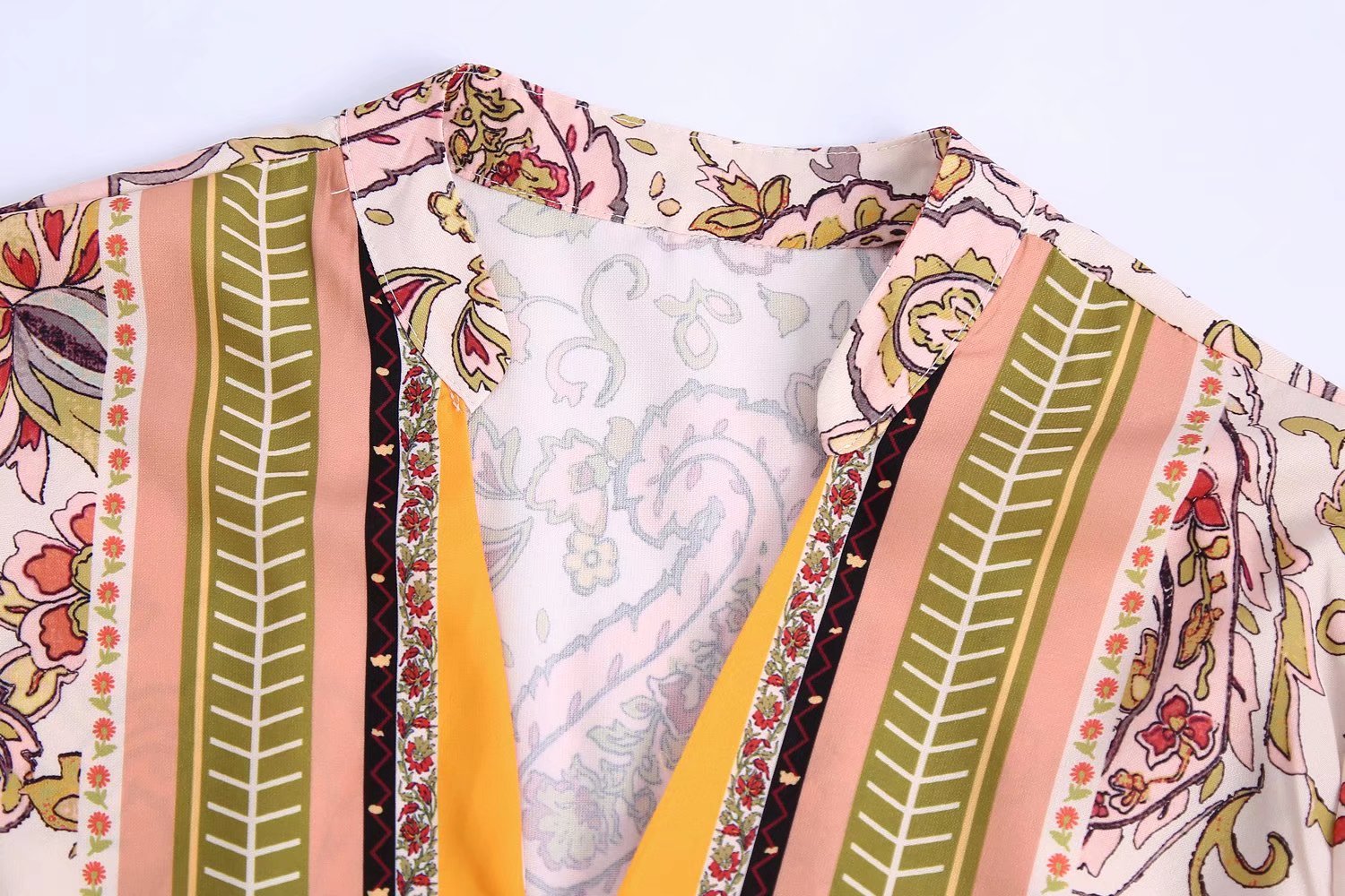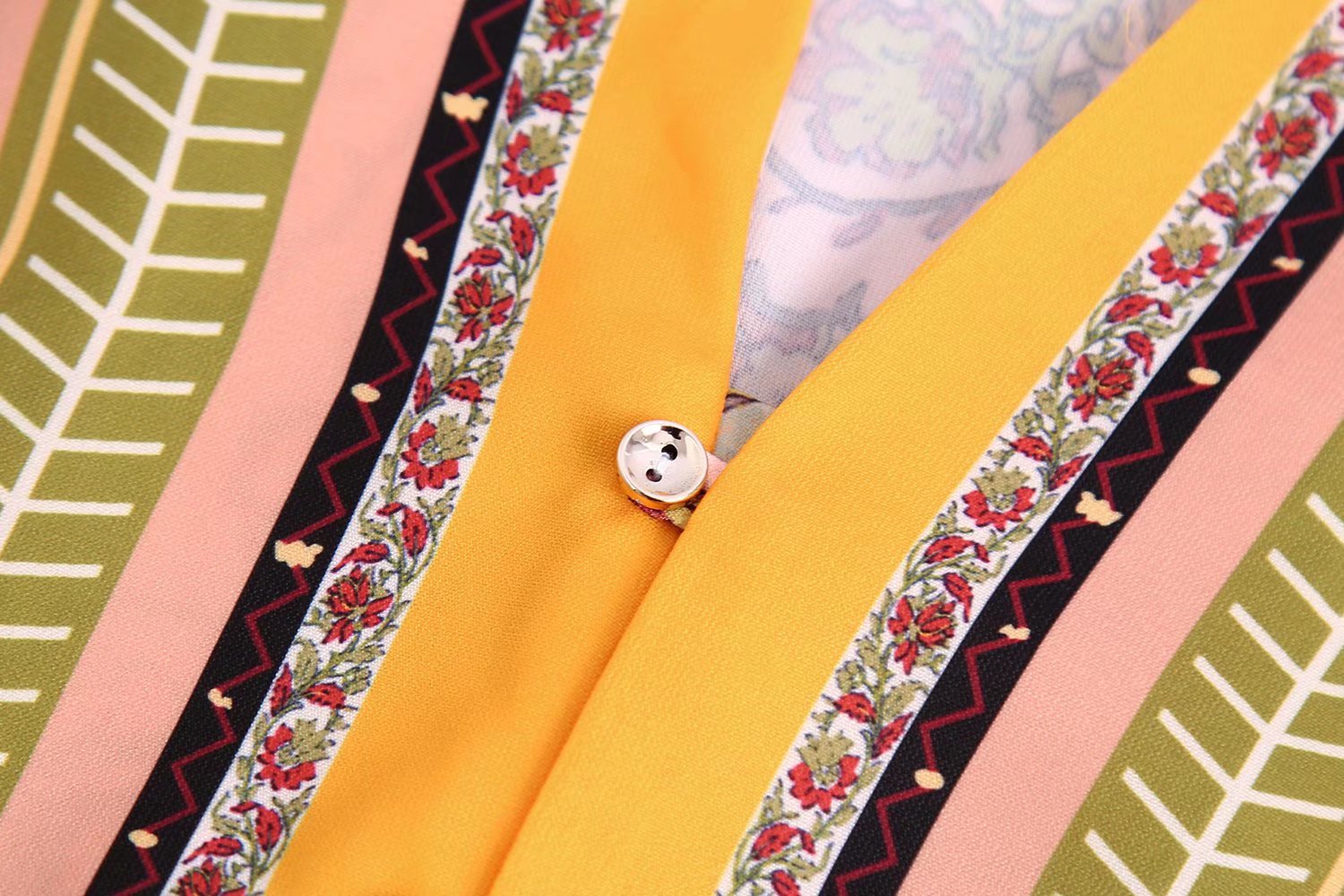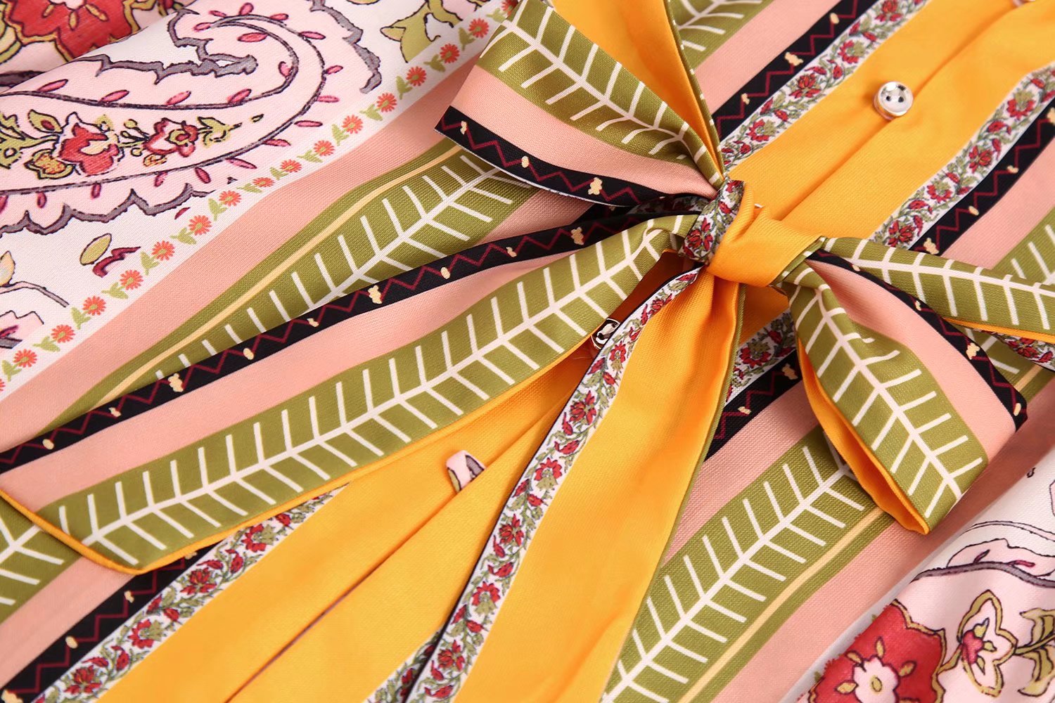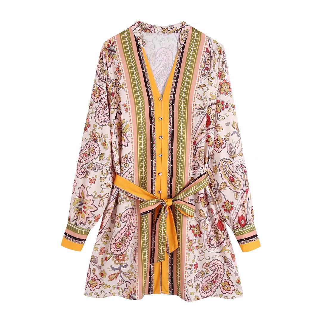 The Moracco V-neck Long Sleeve Breasted Multicolor Belted Dress