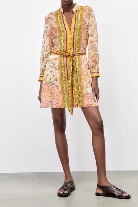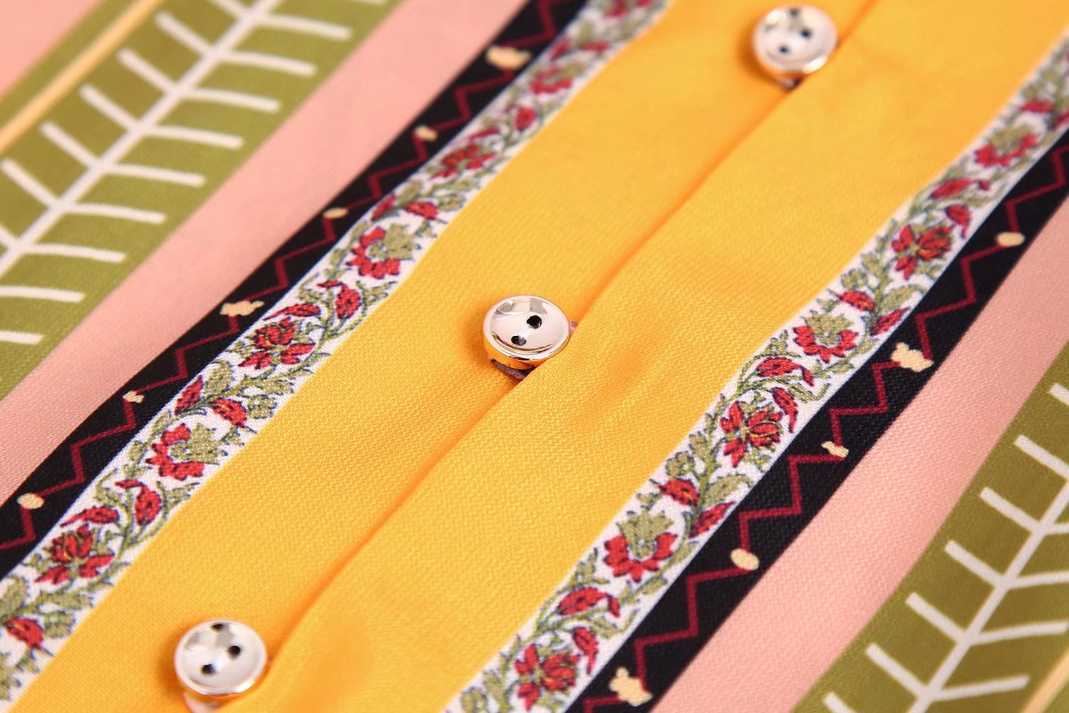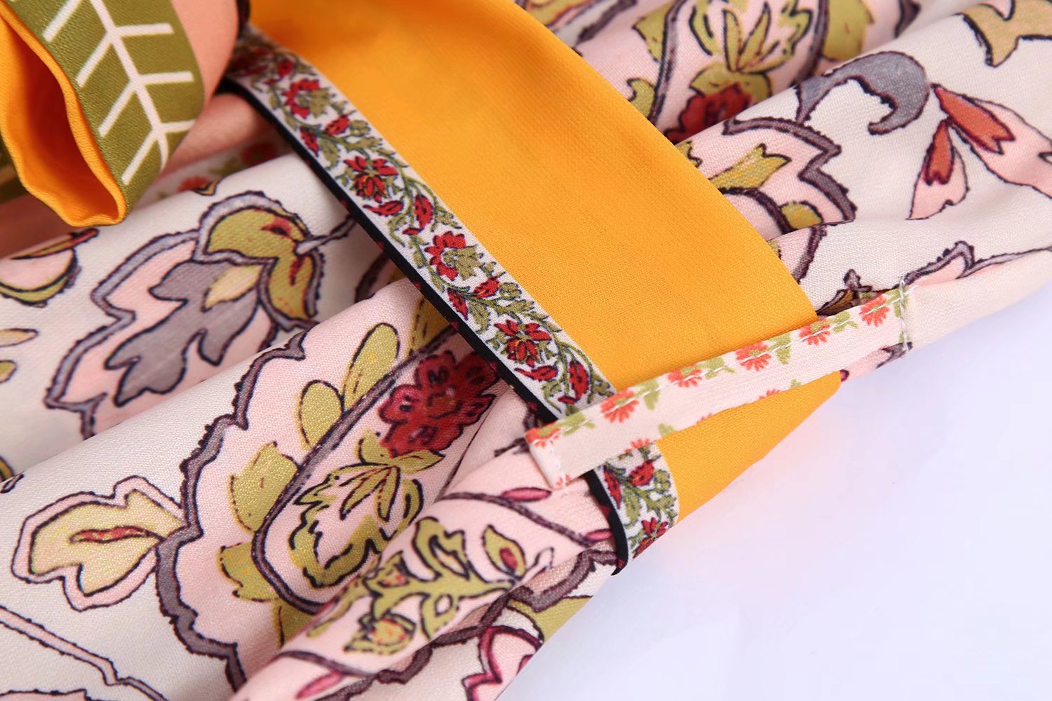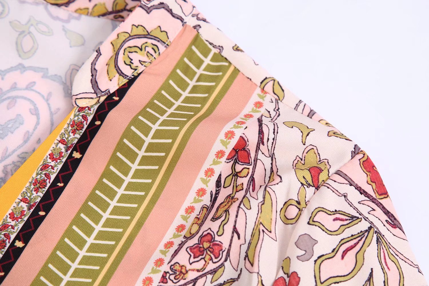 The Moracco V-neck Long Sleeve Breasted Multicolor Belted Dress