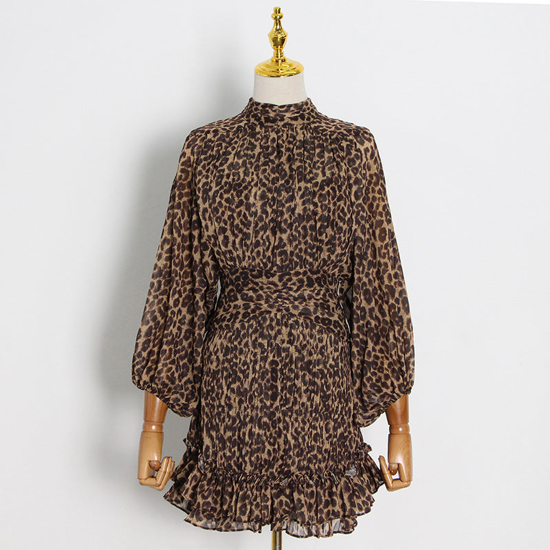 The Victorian Collar Puff Sleeve Leopard Print Dress