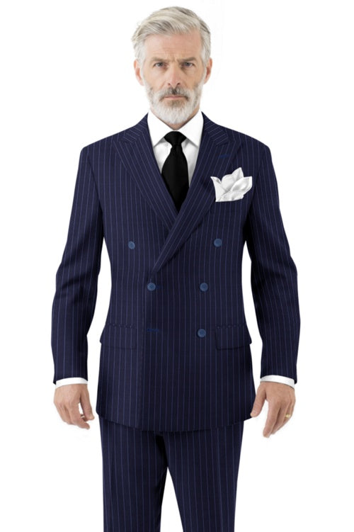 Two Piece Double Breast Navy Chalk Stripe Suit