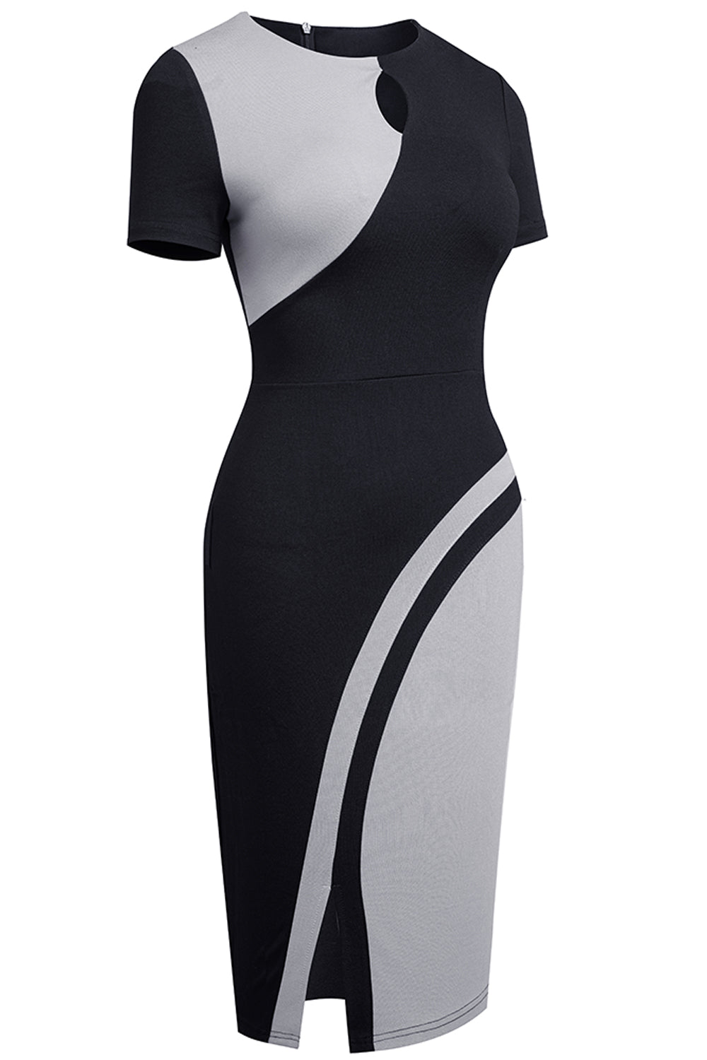 Two-Tone Round Neck Short Sleeve Slit Dress