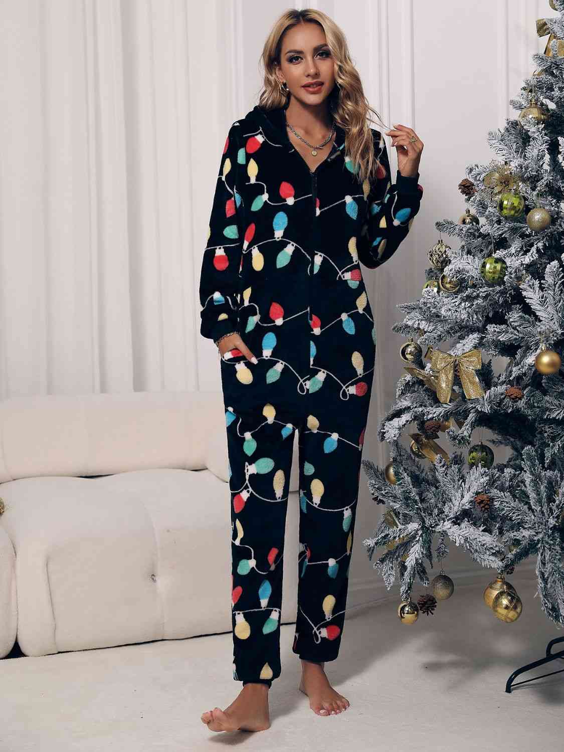 Zip Front Hooded Lounge Jumpsuit with Pockets